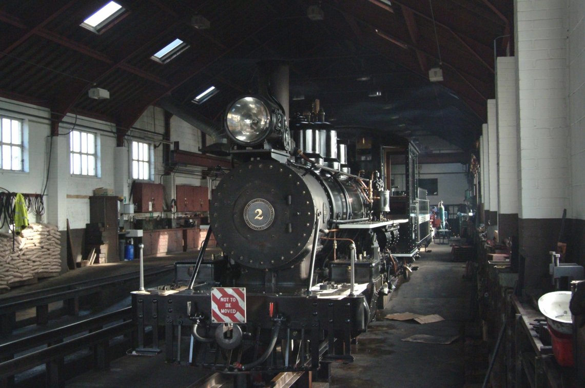 Baldwin Pacific no. 2 in the engine shed at Pant.