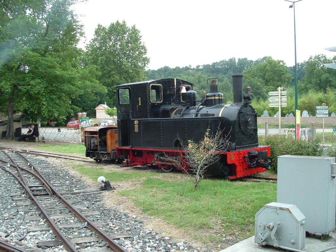 CFT du Tarn number 1- Couillet No1576 of 1910 stands in the station yard at St. Leiux-Lavaur shortly before being dragged into the shed by the tiny Lilliput tractor (With quite a bit of wheel-slip) !