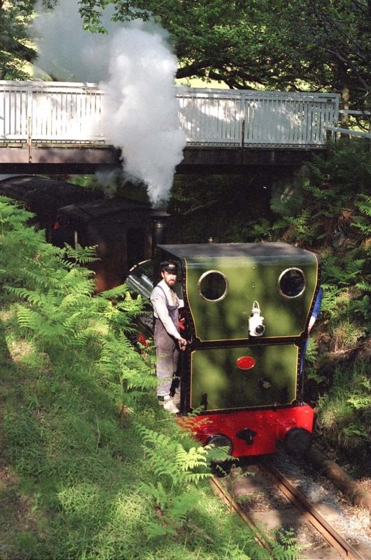 Talyllyn leaving Dolgoch with a down train in May 1987.